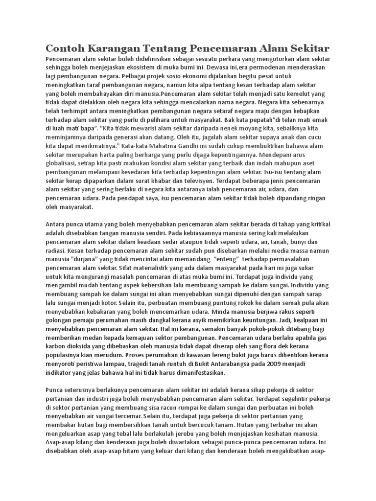 Contoh Karangan Tentang Pencemaran Alam Sekitar Pdf